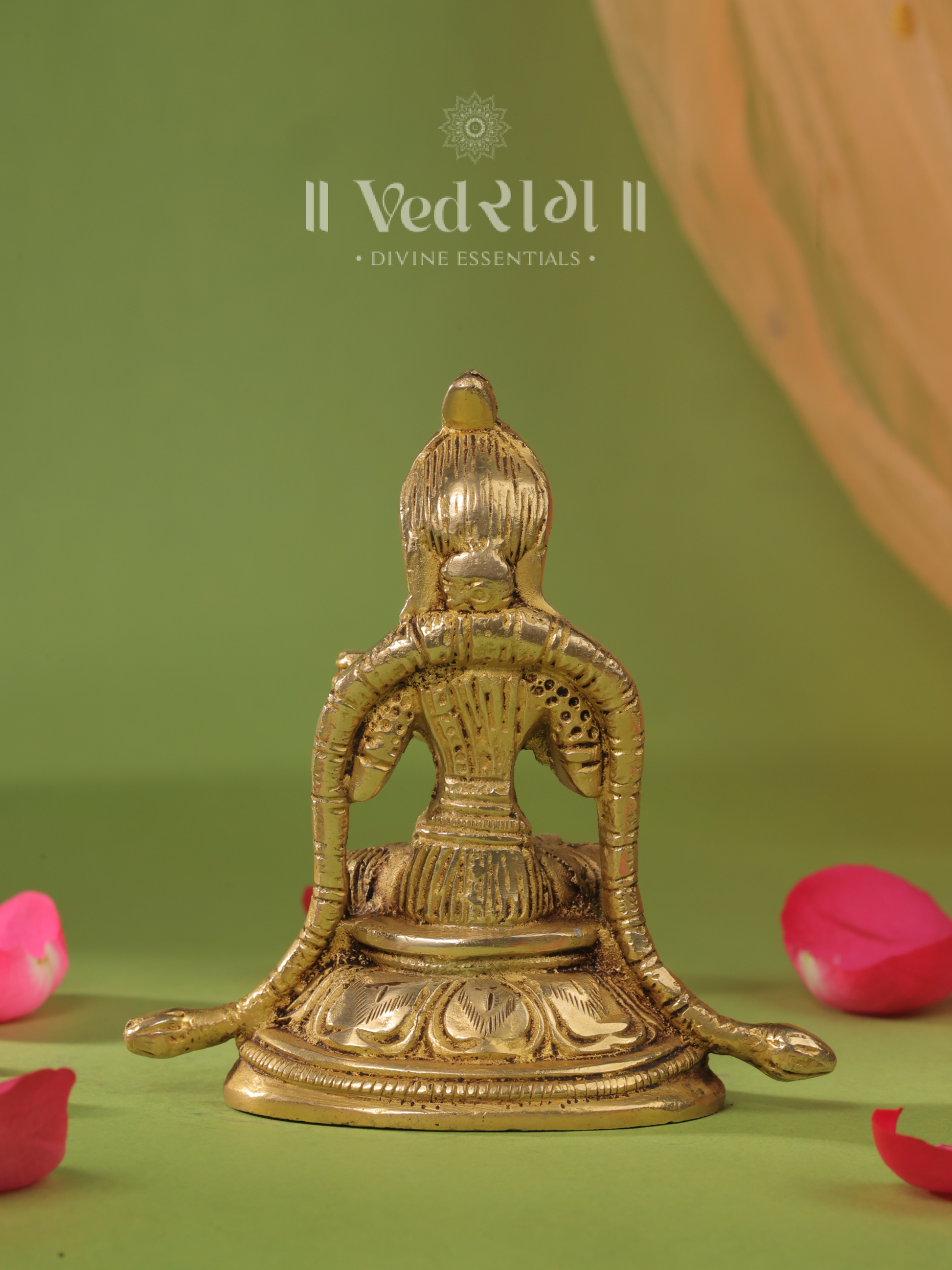 This idol, crafted from high-quality brass, depicts Annapurna Devi seated gracefully, holding a golden bowl and ladle. Her serene expression radiates love, care, and a nurturing presence. The intricate craftsmanship captures every detail of her divine form, making it a true masterpiece that enhances the spiritual ambiance of any space.