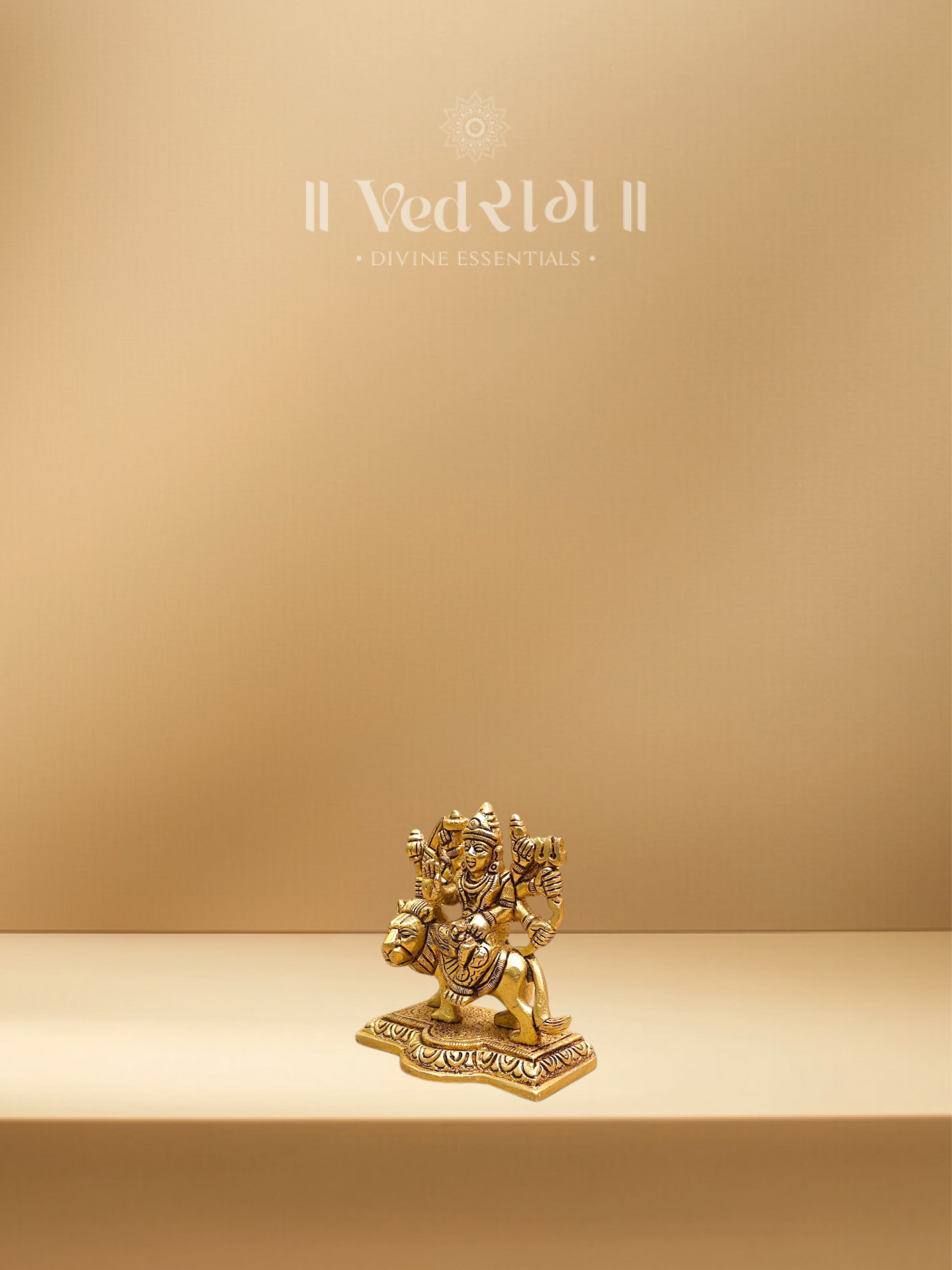The Brass Durga Ji idol embodies the fierce yet compassionate energy of Goddess Durga, the supreme protector and destroyer of evil. Beautifully handcrafted in radiant gold-toned brass, this idol captures the divine Mother seated on her lion, holding her weapons that symbolize strength, righteousness, and victory of good over evil. It is a powerful symbol of courage, protection, and divine grace — perfect for home temples and sacred spaces.