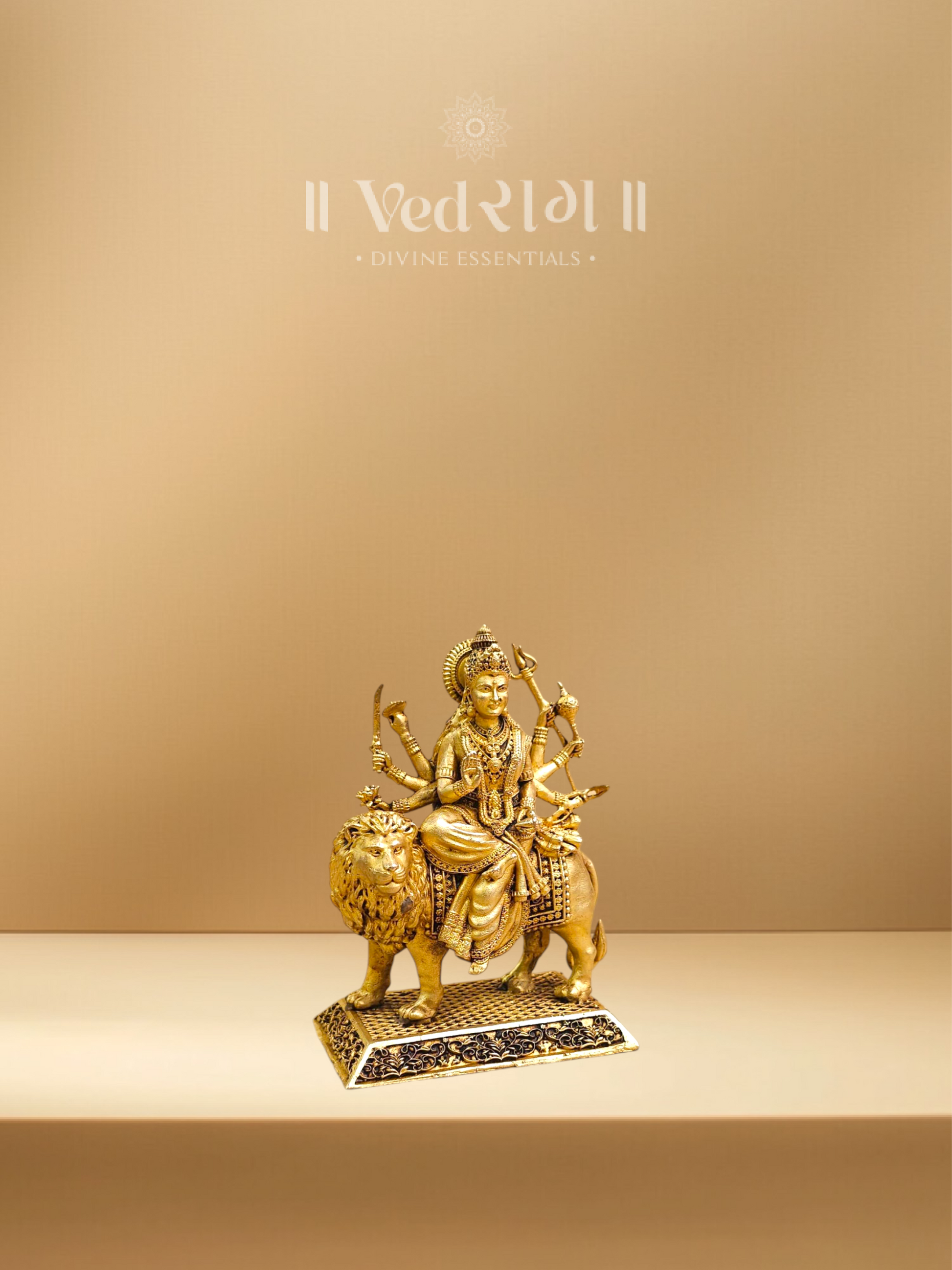 The Brass Durga Ji idol represents Goddess Durga — the embodiment of divine strength, protection, and feminine power. Crafted meticulously from premium brass with a lustrous golden finish, this idol radiates energy, courage, and positivity. It signifies the victory of good over evil and invokes the blessings of Maa Durga for strength, prosperity, and spiritual protection. Perfect for home temples, offices, or meditation spaces, this piece serves as a constant reminder of inner courage and divine grace.