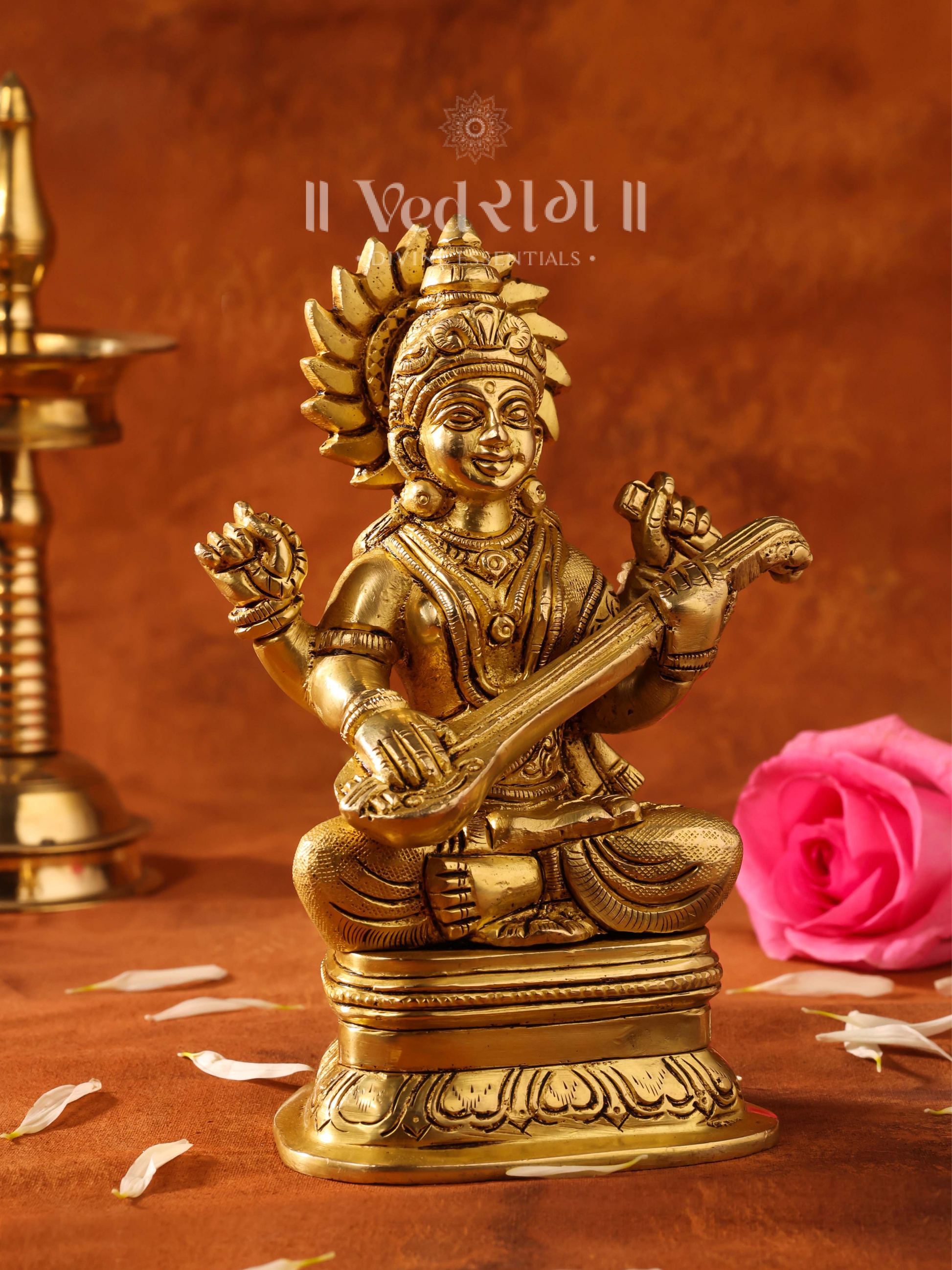 The Brass Mantrini Goddess Statue is a powerful representation of Goddess Saraswati in her form as the divine protector and guide of sacred mantras. Made from high-quality brass, this exquisitely crafted statue captures the grace and spiritual energy of Mantrini, who governs the transformative power of sound vibrations. Known for her ability to purify and elevate the mind, body, and soul, Mantrini is revered by devotees for her blessings in spiritual practices like mantra meditation, prayer, and chanting.