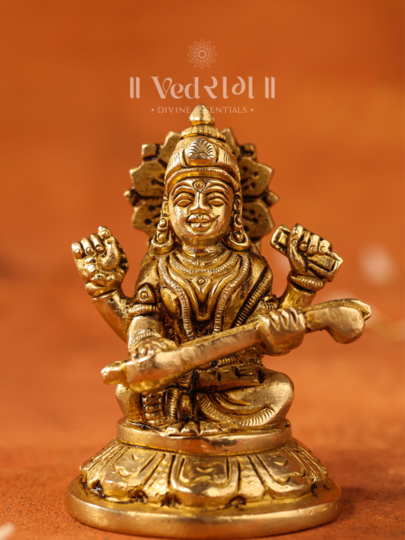 The Brass Pustakadharini Statue beautifully represents Goddess Saraswati as the divine keeper and guardian of knowledge. In this form, she is depicted holding sacred scriptures, symbolizing the preservation and dissemination of wisdom, learning, and enlightenment. Crafted with precision from high-quality brass, this statue radiates elegance and spiritual energy, making it a perfect centerpiece for spaces dedicated to study, meditation, and intellectual pursuits.