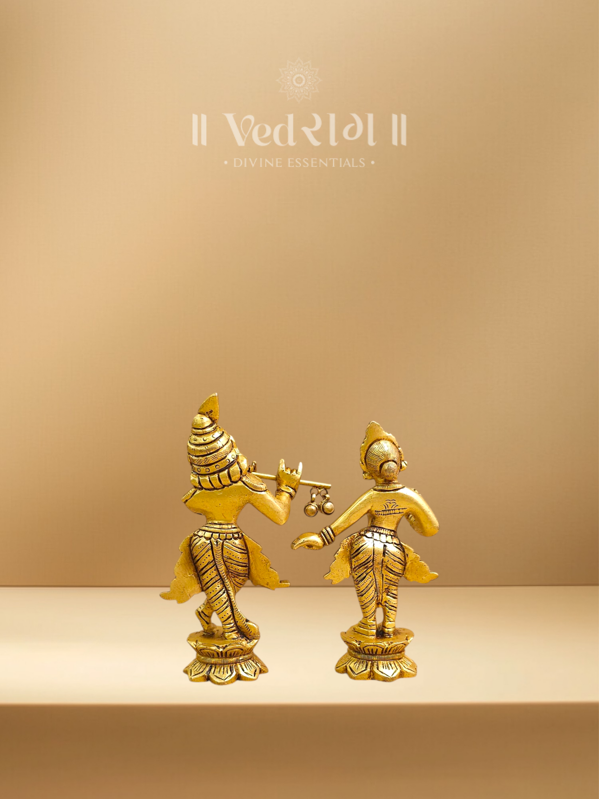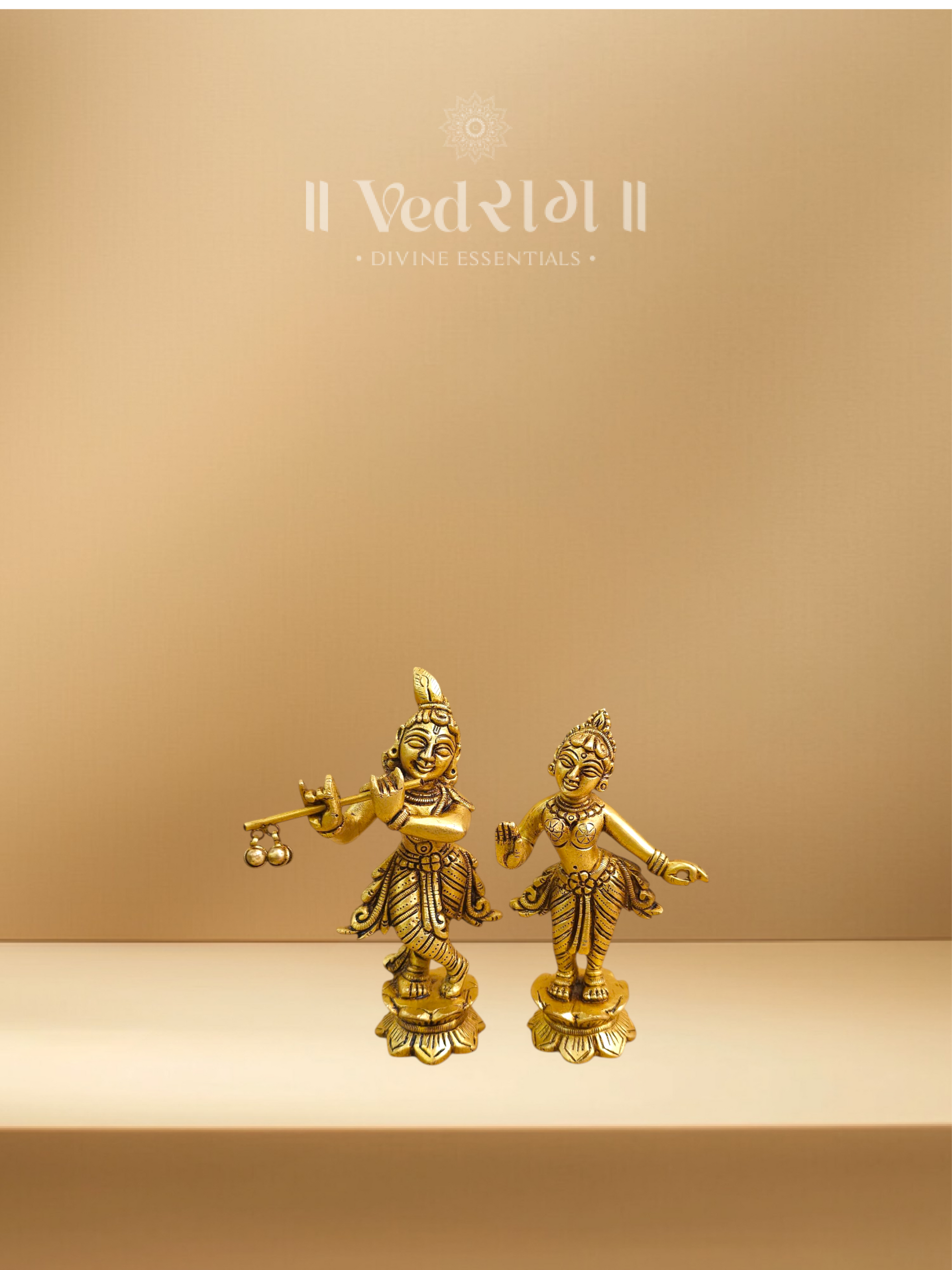 The Brass Radha Krishna idol beautifully captures the divine love and eternal bond between Lord Krishna and Radha. Crafted from premium brass with a radiant golden finish, this exquisite idol symbolizes devotion, harmony, and spiritual unity. Perfect for home temples, meditation spaces, or living areas, it radiates positivity, love, and divine blessings. This sacred piece inspires emotional balance, devotion, and a deeper connection with the divine.
