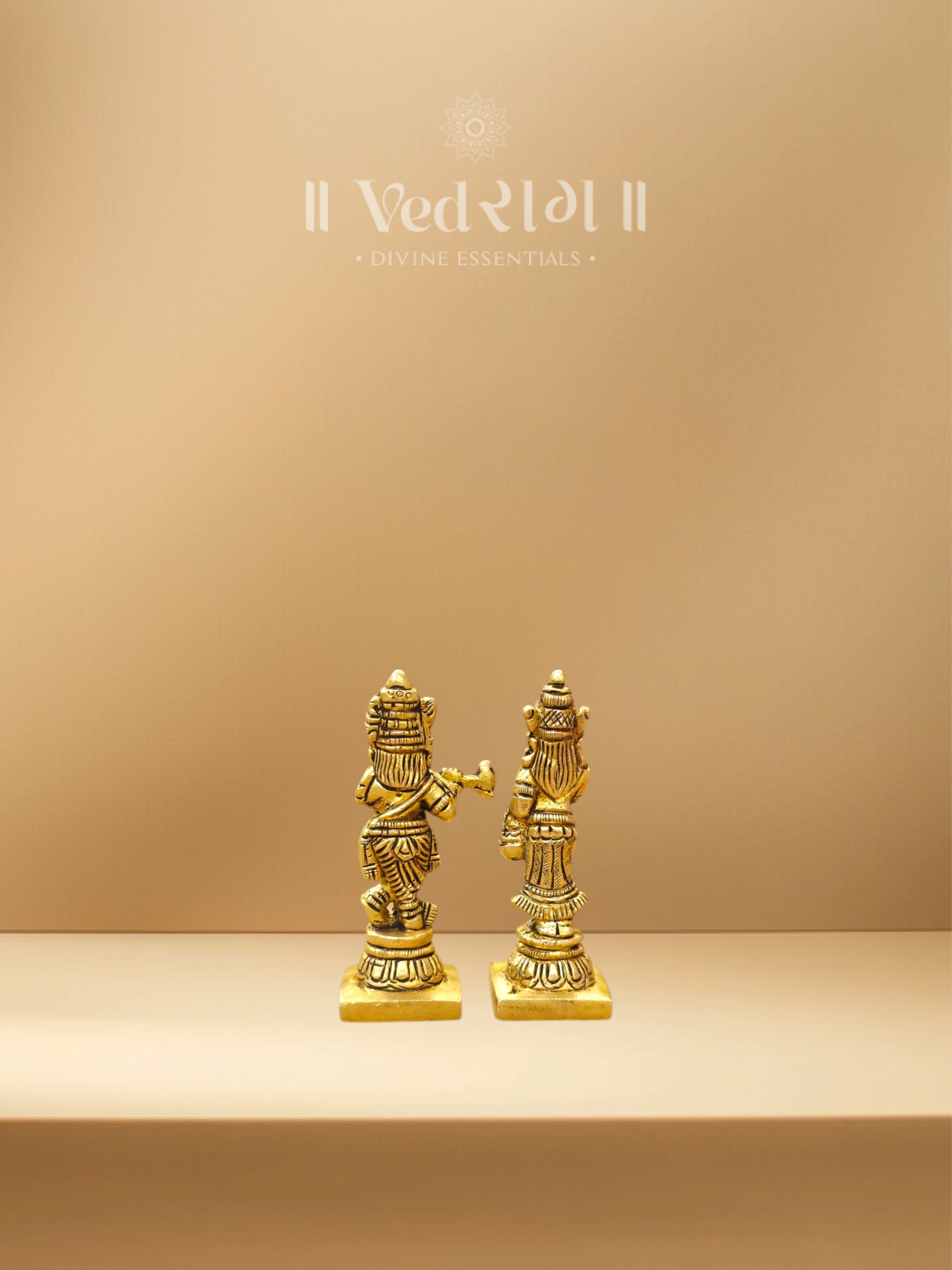 The Brass Radha Krishna idol beautifully represents the eternal love and divine bond between Radha and Krishna. Crafted from premium brass with a radiant golden finish, this intricately designed idol symbolizes devotion, harmony, and spiritual unity. Perfect for home temples, meditation spaces, or living areas, it radiates positive energy and divine blessings, inspiring love, peace, and spiritual upliftment.