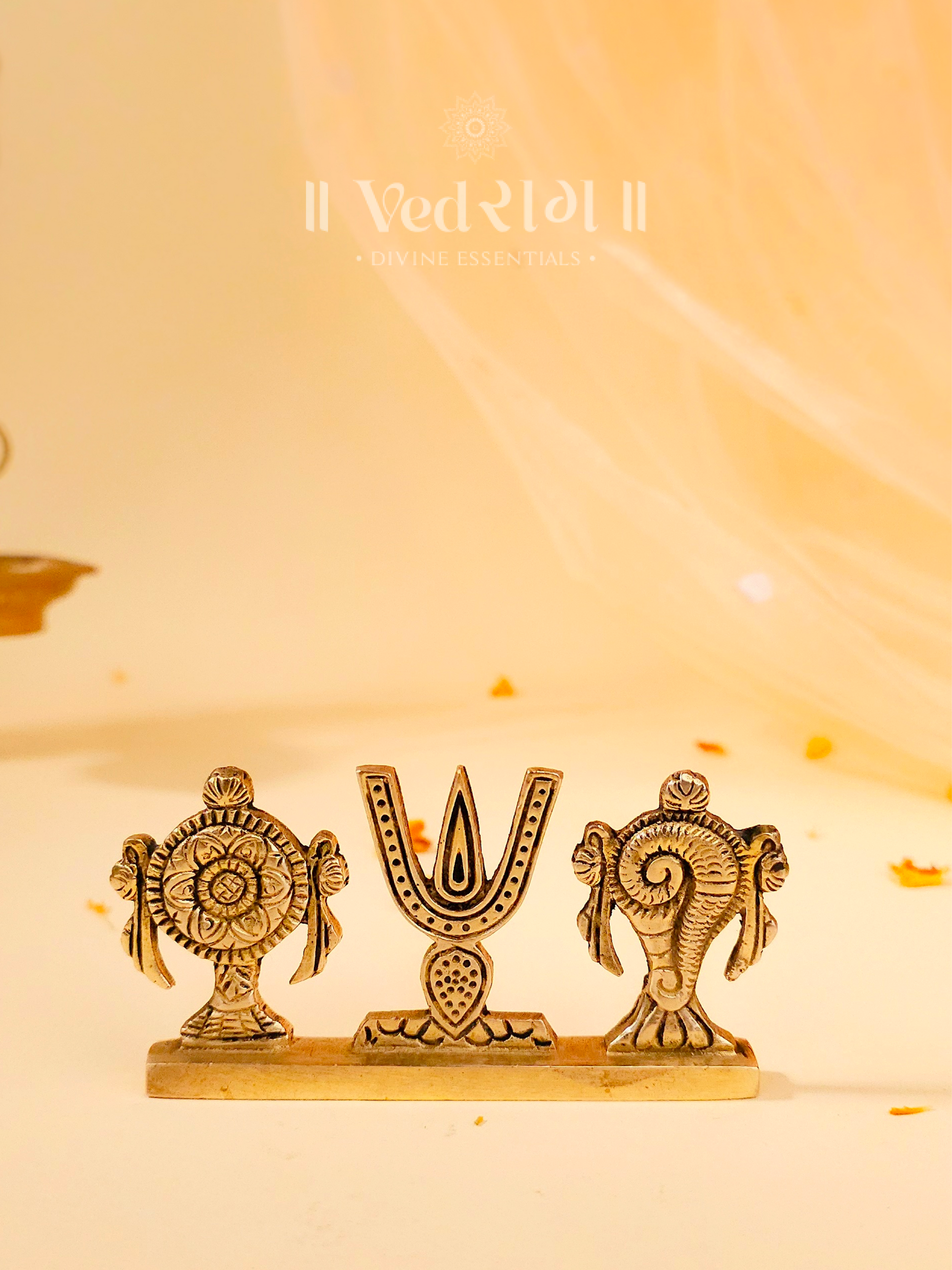 Ideal for auspicious occasions, housewarming ceremonies, or as a gift for spiritual seekers, the Brass Shankhu Chakra Tripund Stand enhances your spiritual environment with divine power.
