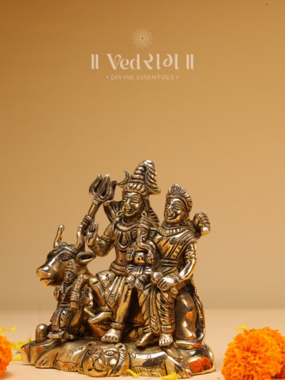 The Brass Shiv Parivaar Statue beautifully represents the divine family of Lord Shiva, Goddess Parvati, and their son, Lord Ganesha. This exquisite idol symbolizes love, unity, and spiritual strength, making it a perfect addition to your home temple or sacred space.