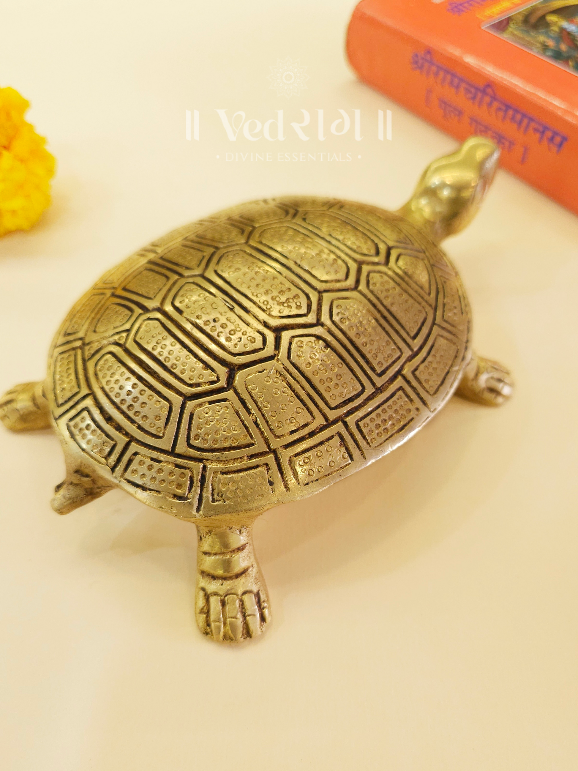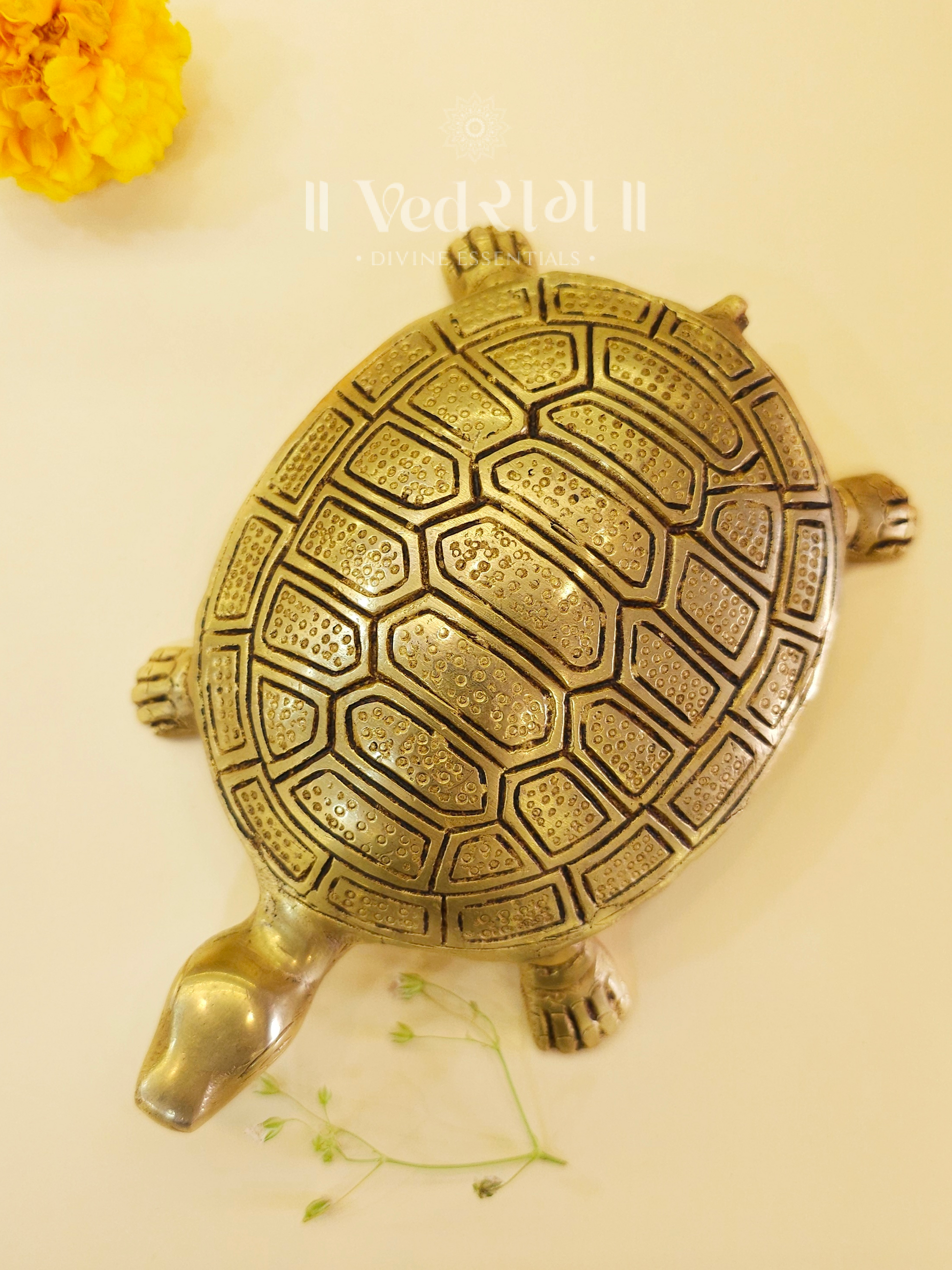 The Brass Tortoise is a revered Vastu and Feng Shui symbol that represents stability, longevity, and prosperity. In Hindu mythology, the tortoise is associated with Lord Vishnu’s Kurma Avatar, which supports the cosmic balance. This beautifully crafted brass tortoise is a powerful symbol of endurance and success, bringing harmony and wealth to your home or workplace.