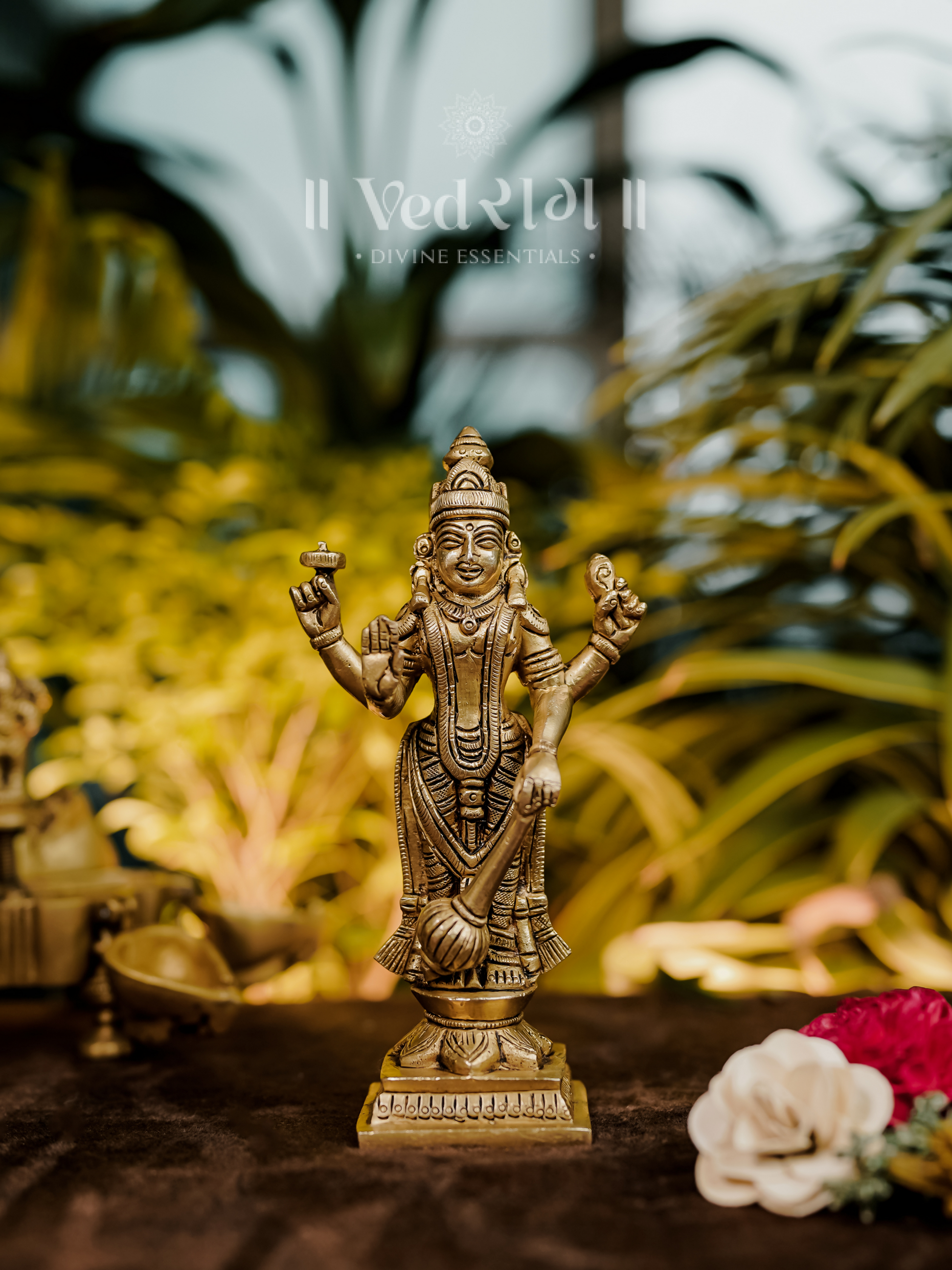 Placing the Brass Vishnu idol in your home or Pooja room not only enhances the spiritual atmosphere but also invites the blessings of stability, wisdom, and divine protection. This idol serves as a powerful reminder of the eternal values of dharma and the divine order that Lord Vishnu maintains, filling your space with a sense of calm, reverence, and divine grace.