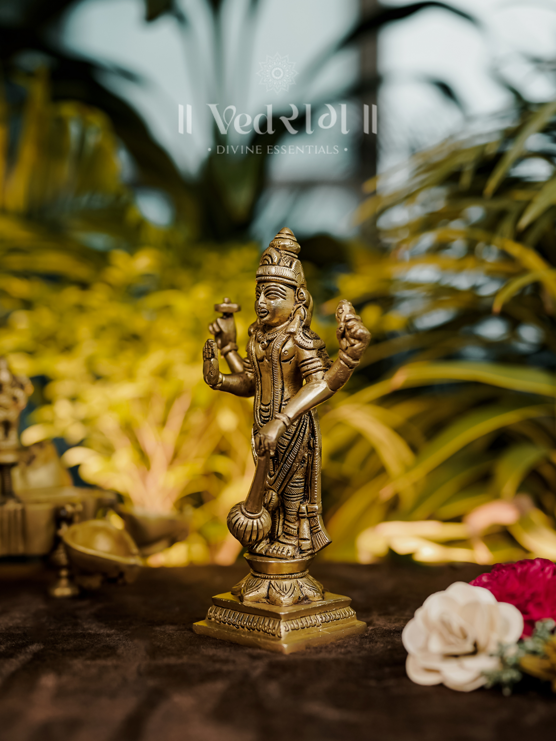 The "Brass Vishnu" idol embodies the serene and omnipresent energy of Lord Vishnu, the preserver and protector of the universe. Revered as the sustainer of life and the upholder of dharma, Lord Vishnu's divine presence brings peace, harmony, and spiritual prosperity into your home.