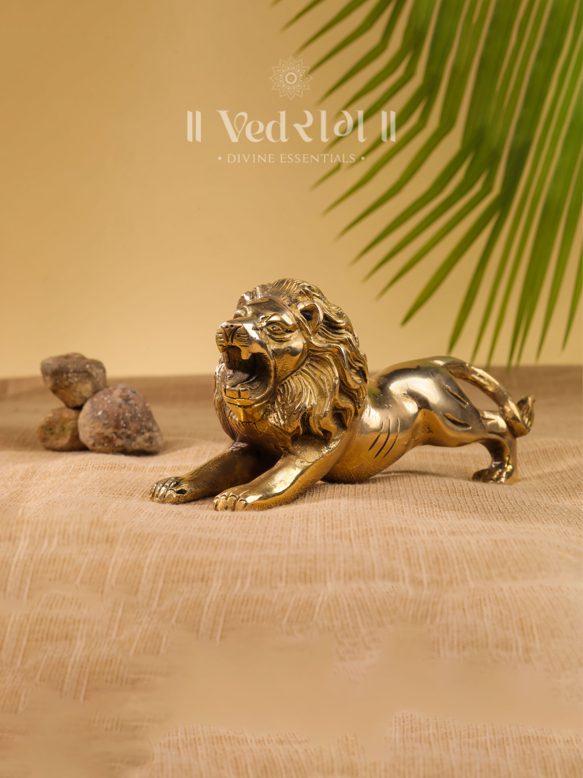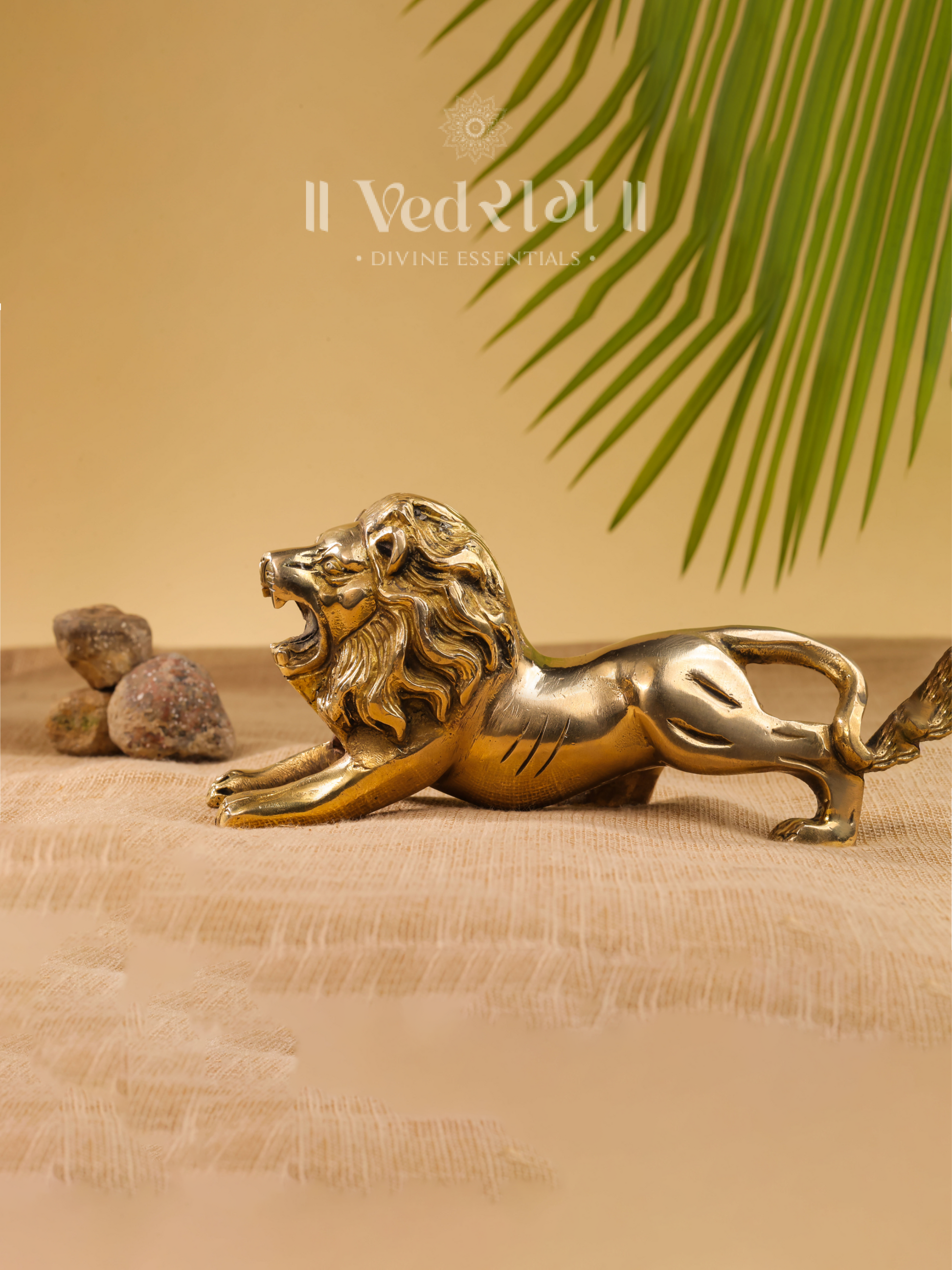 The Brass Vyaghrapati statue is a stunning representation of strength, courage, and leadership. Crafted with intricate detailing from high-quality brass, this statue embodies the fierce and regal energy of the lion, also revered as the "Lord of the Jungle." The name Vyaghrapati signifies dominance, protection, and fearlessness, making this piece a powerful addition to your home, office, or sacred space.