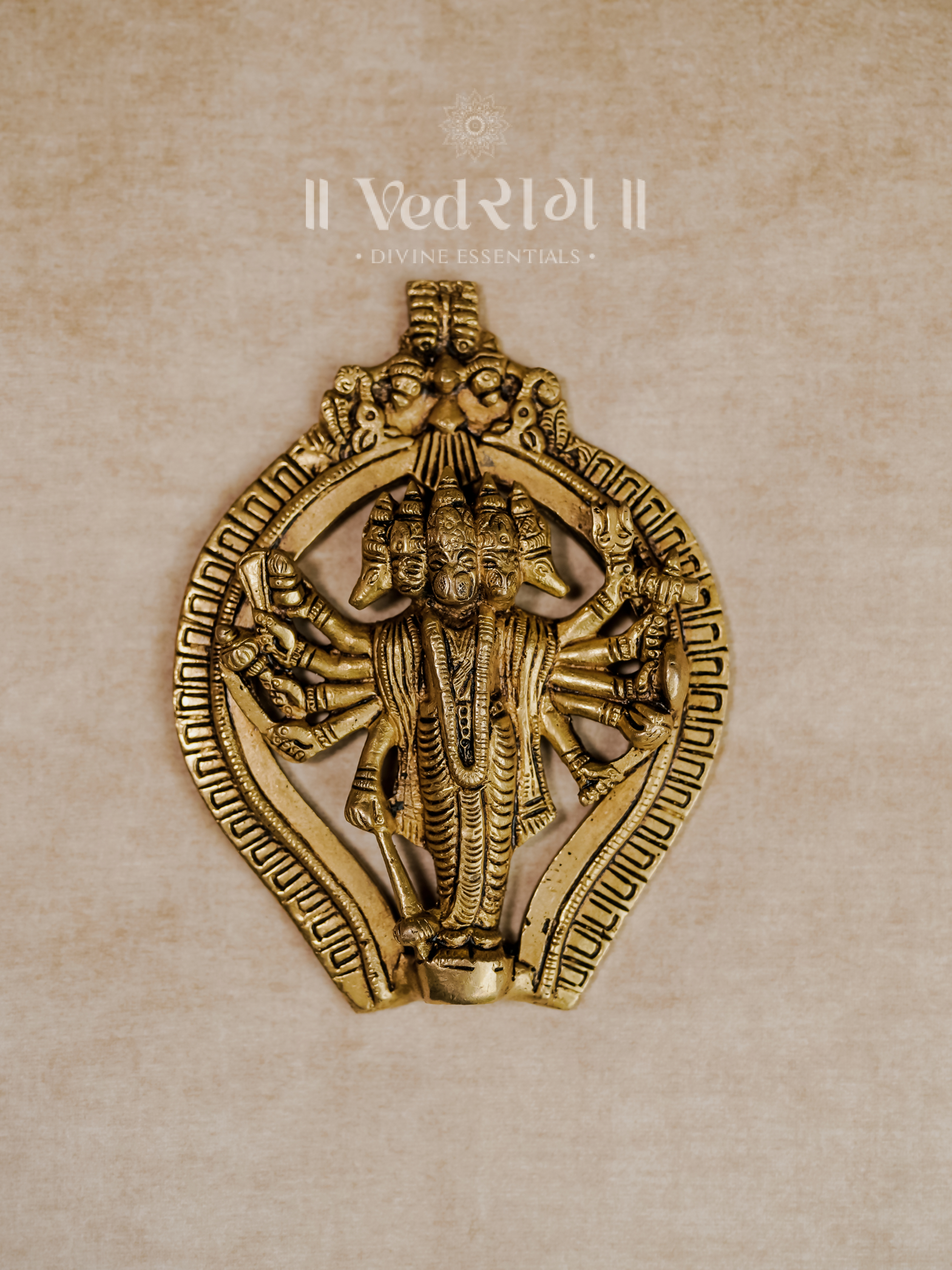 Expertly crafted from high-quality brass, this wall hanging showcases the intricate details of each face, capturing the divine energy and grace of Lord Hanuman in his Panchmukhi form. The craftsmanship reflects the rich tradition of Indian metal art, with every feature designed to inspire awe and reverence. The wall hanging is not just a decorative piece but a spiritual symbol that radiates protection and positivity throughout your home.